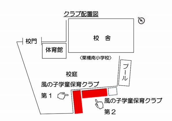 四季を感じる木々に囲まれた学校の校庭のすぐ前に第1クラブ、第2クラブがあり、1年生から6年生までのこども達が毎日元気に過ごしています。ウノやトランプ、ブロックが人気の室内や、おにごっこ、サッカー、一輪車などおもいきり体を動かす外遊びなどで異学年同士仲良く遊んでいます。また、こども達の楽しみが広がるよう、地域の方達による読み聞かせや、季節の行事を行っています。レクレーションなどで、こども達の交流をより深めてまいります。